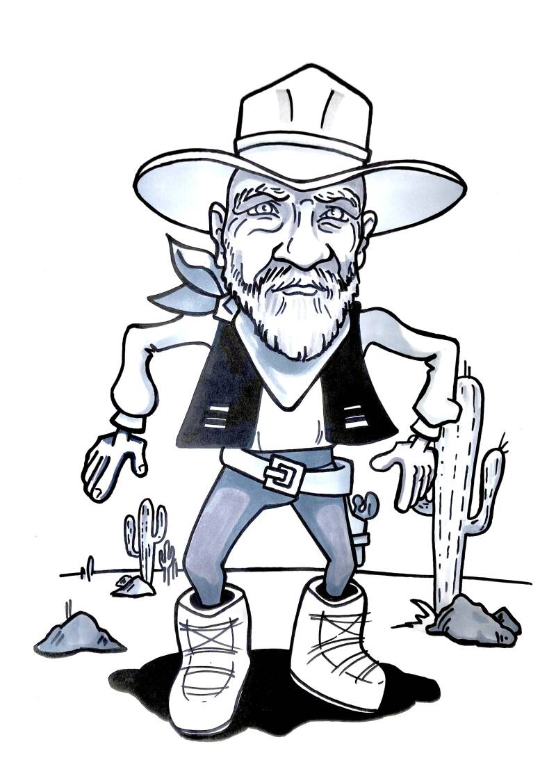Mischtechnik, diverse Karikaturen. Oft Aquarell mit Holzmalfarben, Tusche oder Fineliner gemischt. Auf Papier in unterschiedlichen Farben.