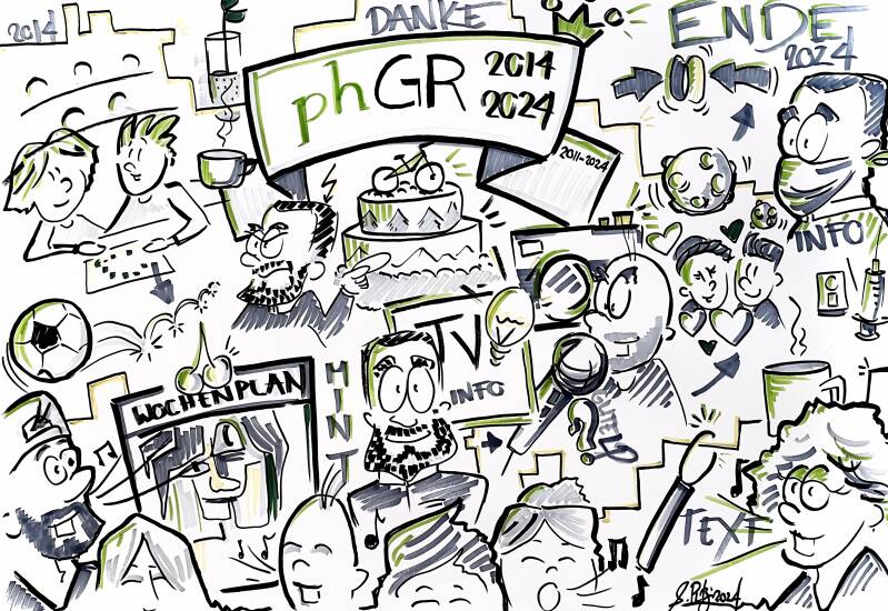 Zum Abschied vom Rektor erzählen Alumni Episoden aus seiner Amtszeit. Ich habe zeitgleich mit gezeichnet und zum Schluss konnte der Rektor das fertige Bild mit nach Hause nehmen.